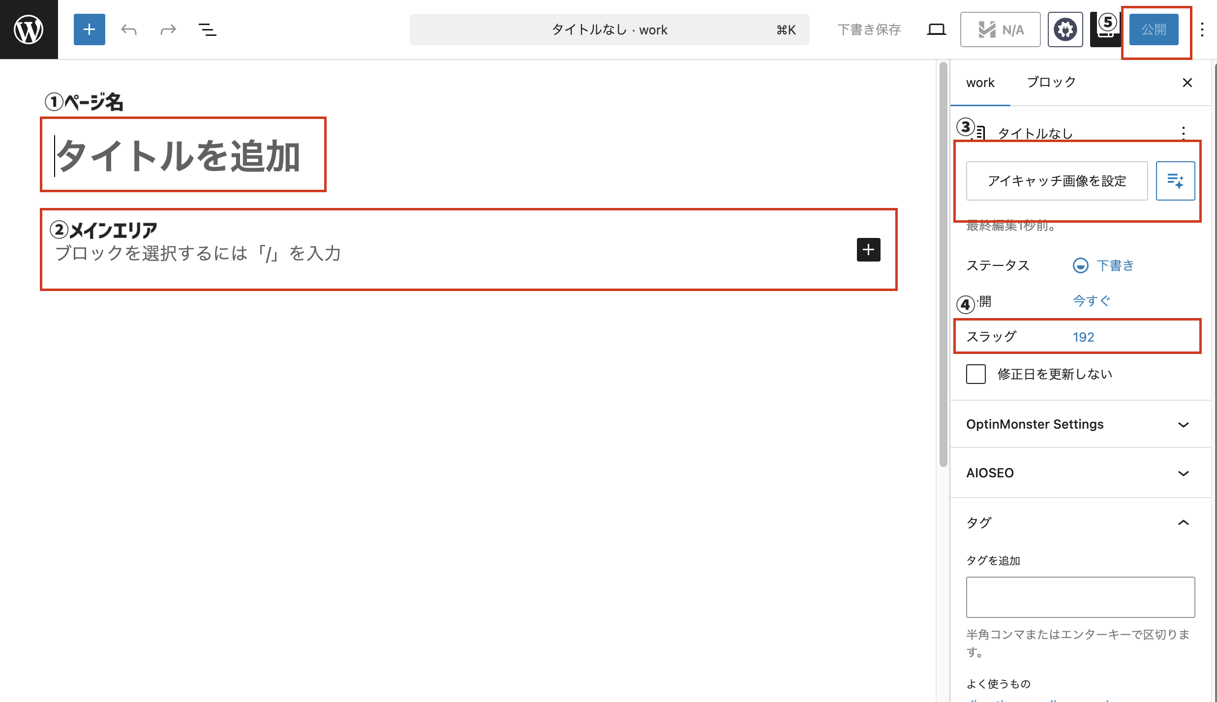 ※ページ名にリンクしたわかりやすいスラッグ名にすることをオススメします。